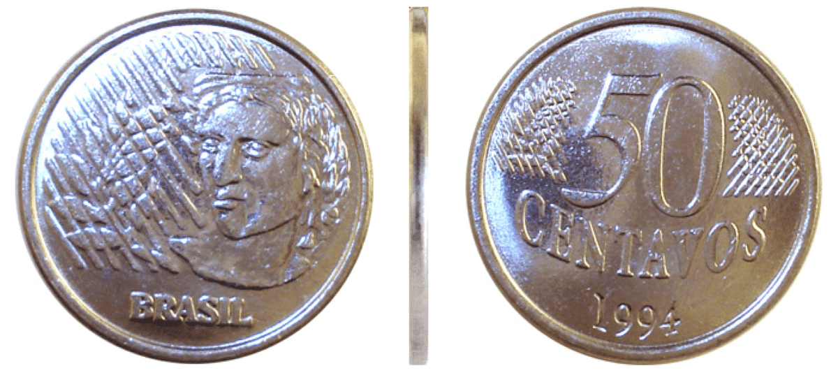 Ao ser lançada, a primeira família do real — em circulação entre 1994 e 1997 — não chamou muita atenção do público fora do contexto da estabilização econômica. No entanto, a moeda de 50 centavos de 1994 saiu da Casa da Moeda com uma particularidade: parte da tiragem apresentou desalinhamento entre o disco central e o anel externo, gerando o chamado “erro de cunhagem deslocada”. Colecionadores buscam esse tipo de falha porque: