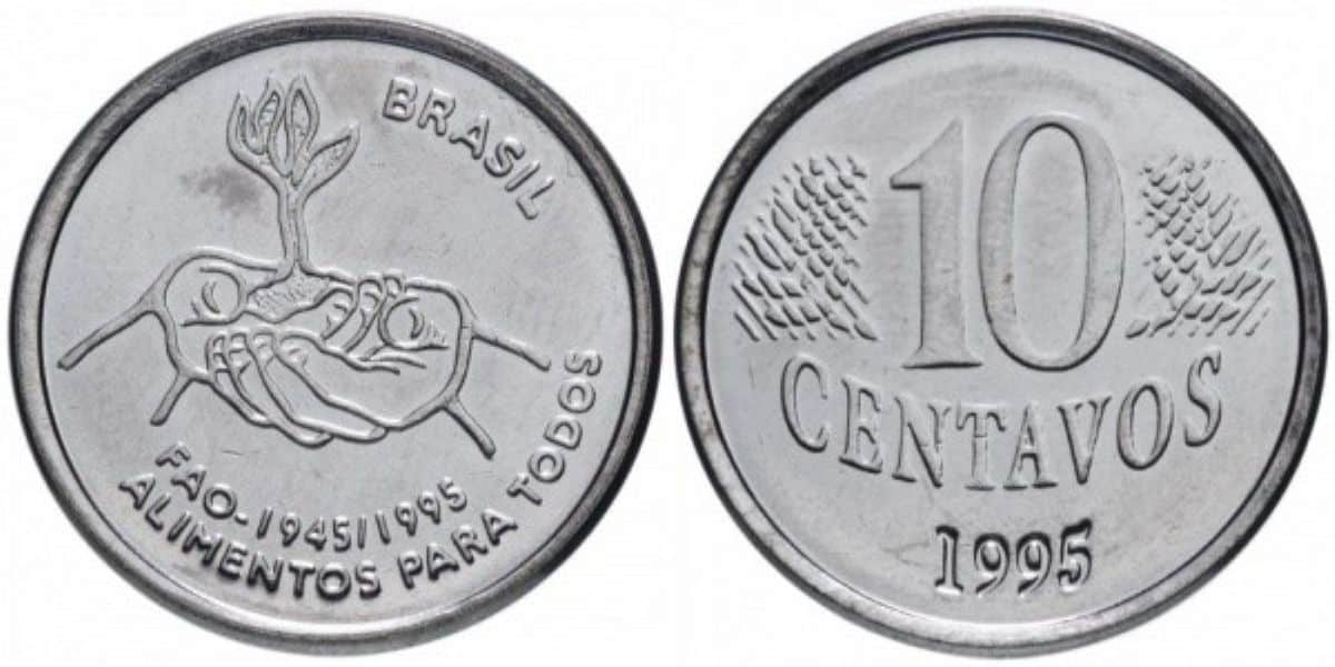 Lançada pela Casa da Moeda do Brasil em 1995, a moeda de 10 centavos FAO fez parte de uma série comemorativa em apoio à Food and Agriculture Organization (FAO), órgão das Nações Unidas dedicado ao combate à fome. O objetivo era promover a campanha “Alimentos para Todos”. Ao todo, cerca de 57 milhões de unidades foram produzidas, número baixo quando comparado aos 10 centavos emitidos em 1996, que ultrapassaram 700 milhões. Essa diferença explica, em parte, a procura elevada nos catálogos numismáticos.